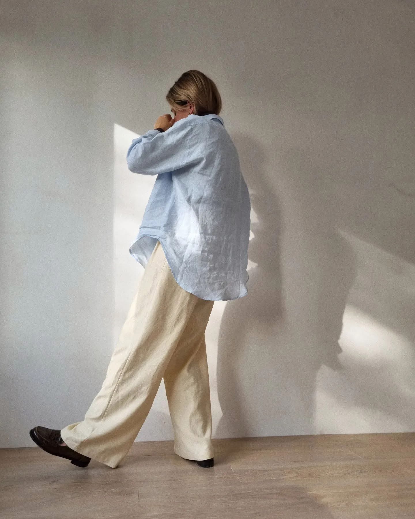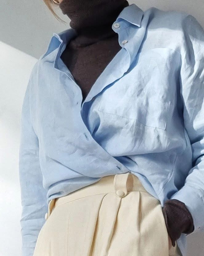 Designed with a relaxed, effortless silhouette, it pairs perfectly with everything from tailored trousers to flowing skirts. The natural texture of the linen adds a lived-in feel that becomes even softer over time.