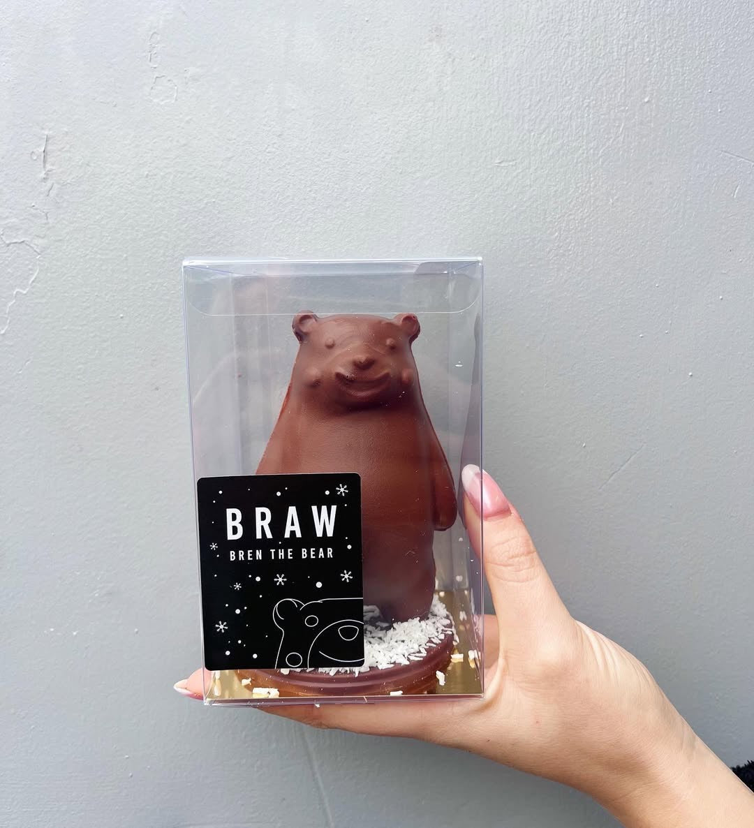 40% Colombian Milk chocolate bear filled with hand made fruit jellies and gingerbread caramel truffles