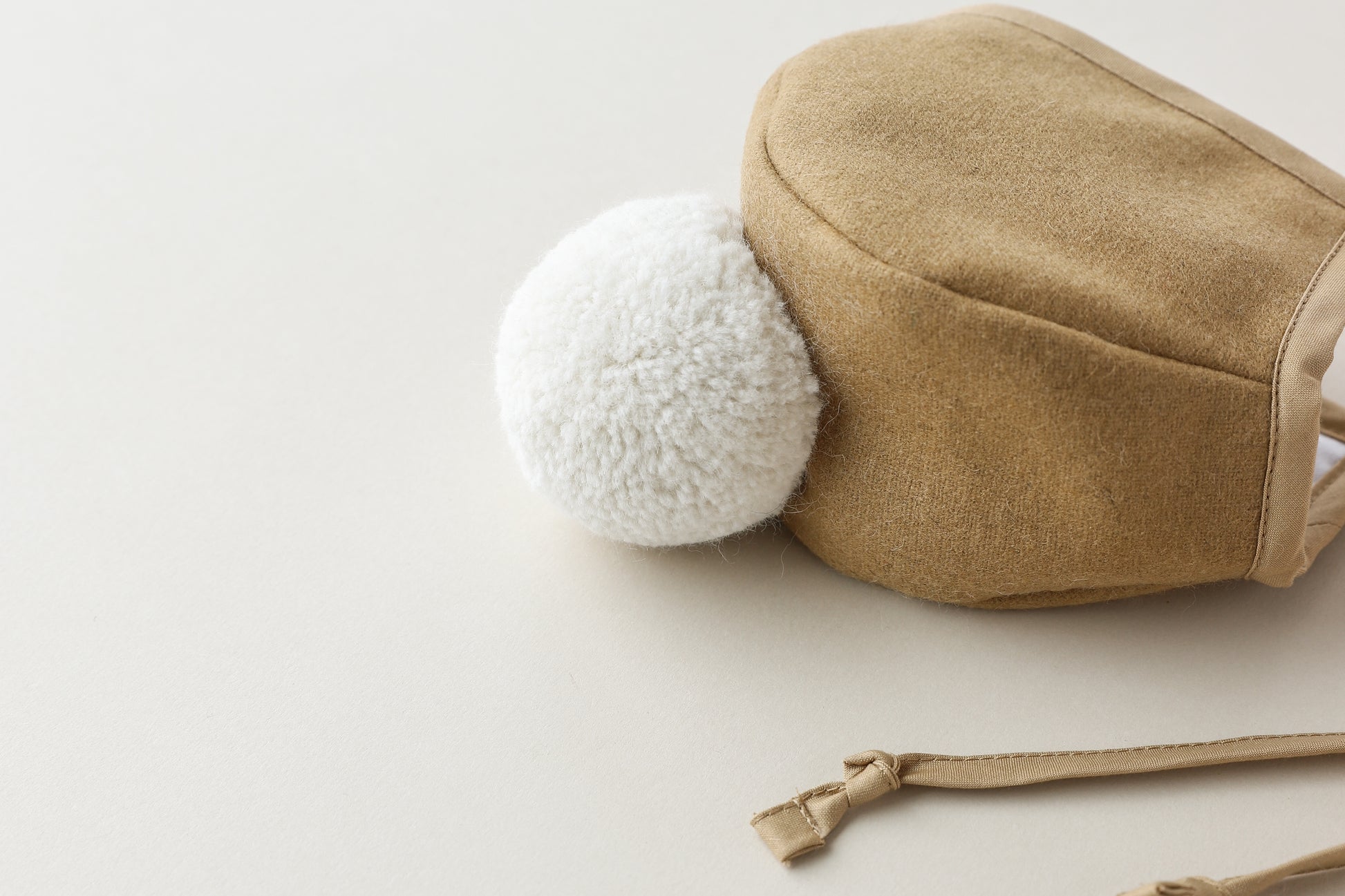 Composition: Wool shell, cotton trim, baby alpaca wool pom, and lined with ultra soft 100% cotton.