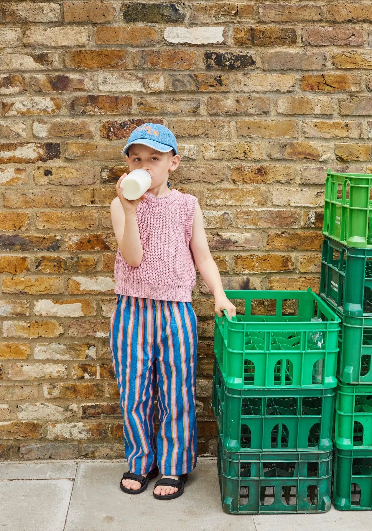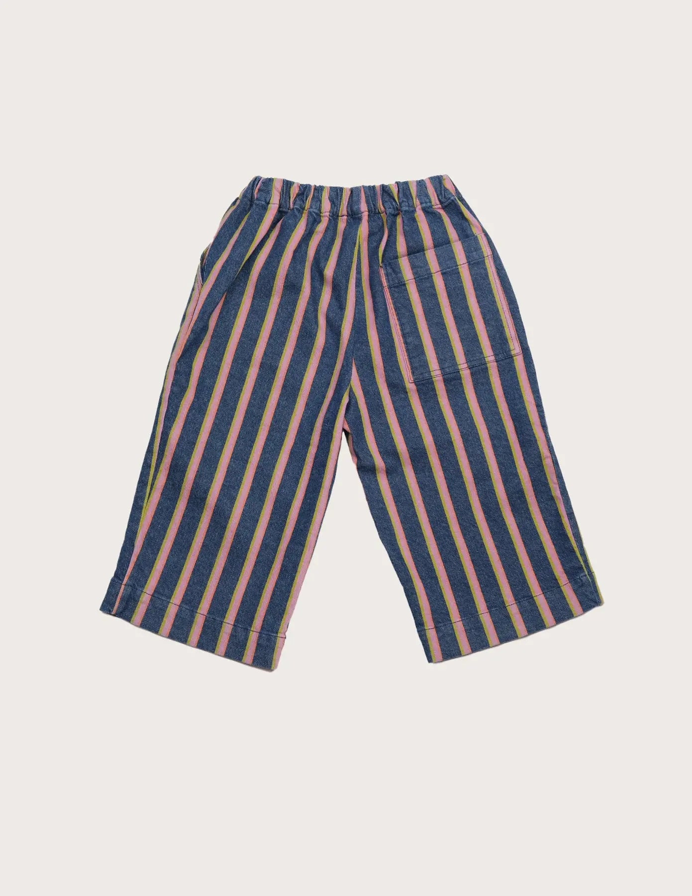 Thoughtful design details include slanted side pockets for little treasures and a patch pocket at the back. The yarn-dyed stripe construction means the pattern is woven into the fabric itself, ensuring lasting color and durability through countless washes and adventures.