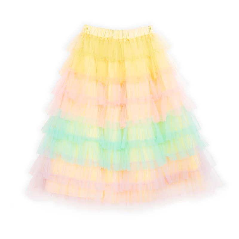 With its vibrant shades of yellow, pink, green, and orange, this skirt is a true rainbow of happiness that will turn every day into a colourful celebration. 🎨