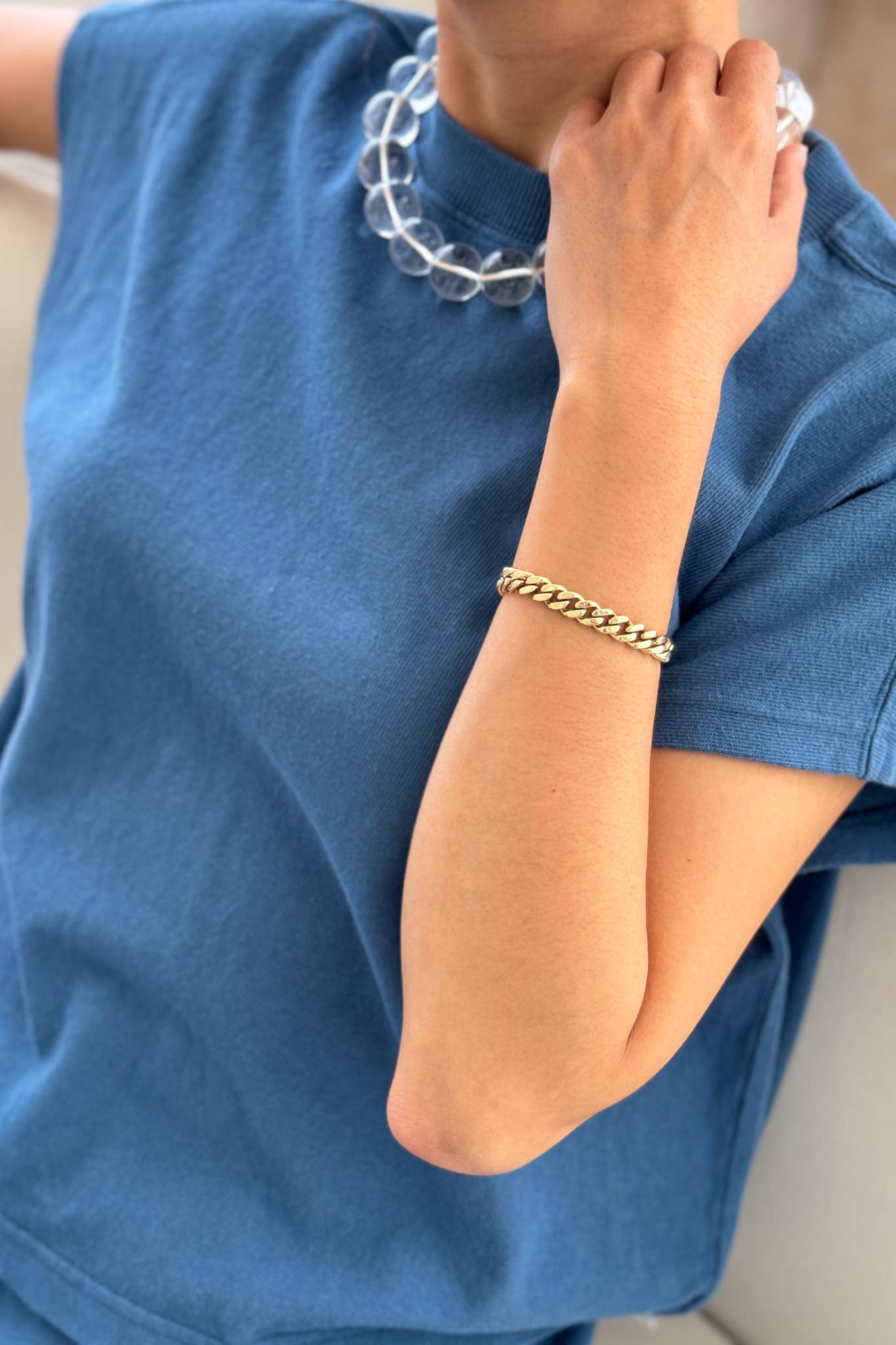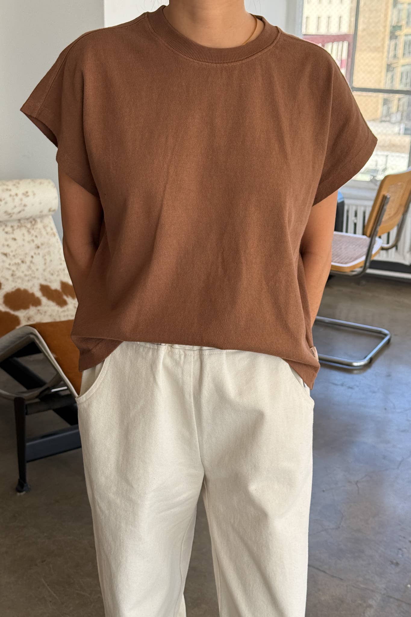 She features a shorter length to pair perfectly with high waisted bottoms but still give enough coverage for mid-rise bottoms and just the right amount of off shoulder dolman sleeve. She has a high crew neck with an extra wide neckband that adds to her signature charm.