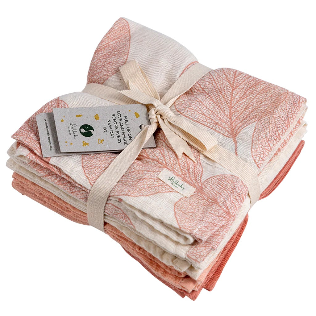 Four multifunctional muslin cloths made from particularly soft and absorbent GOTS-certified organic cotton.