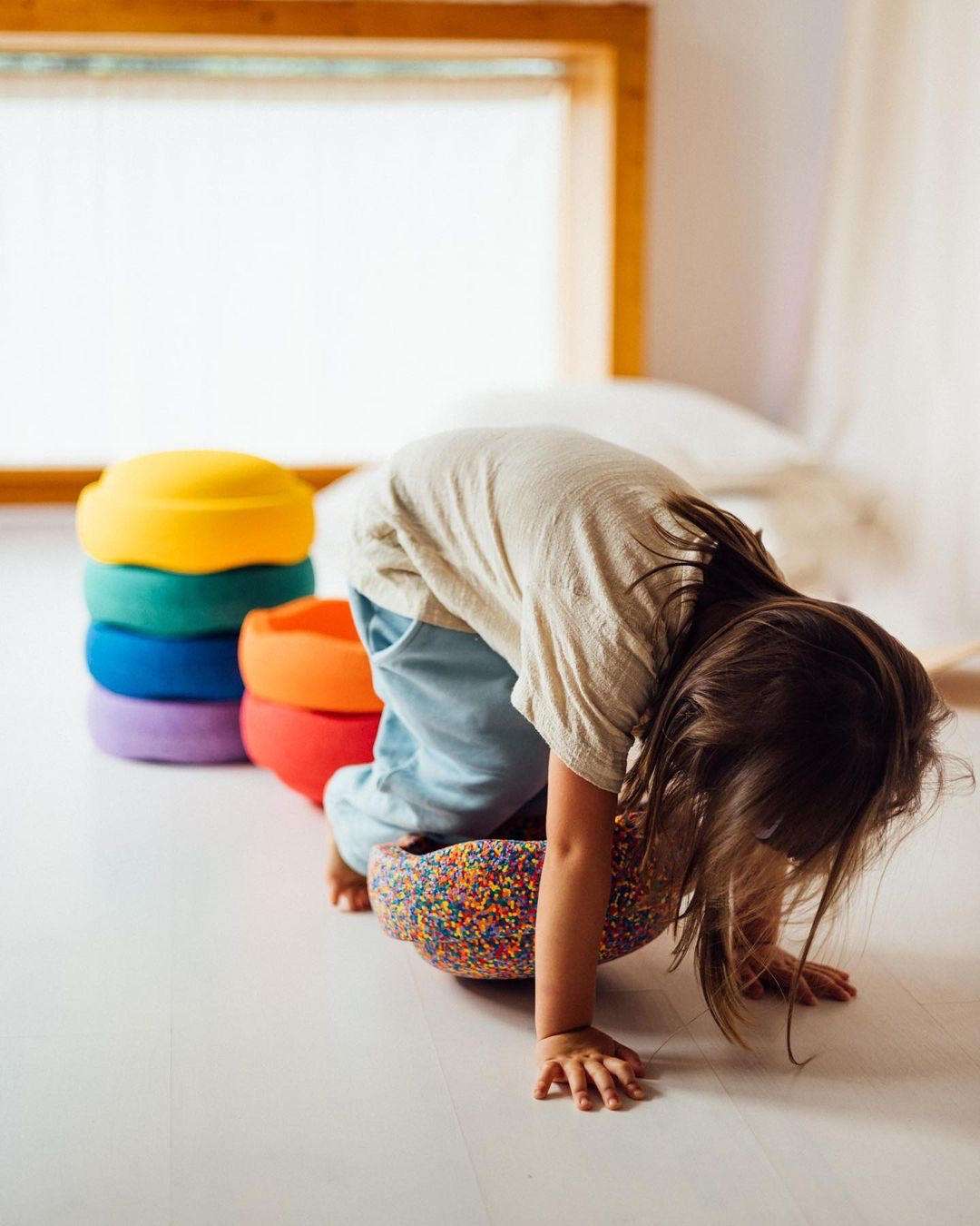 This really is a fantastic open-ended play set that will be played with day after day. The stepping stones are truly multi-functional and can be used as creatively and intuitively as your child wants to. Stack a tower, make a seat, use them in water... the opportunities for play are endless. Plus the addition of the Stapelstein wobble board in this set means kids can really get to grips with balance, and body awareness.